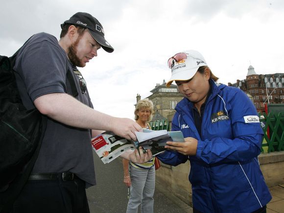 [OSEN=스포츠부] 박인비(25, KB금융그룹)가 브리티시 오픈 공식 연습라운드를 마치고 팬에게 사인을 해주고 있다.