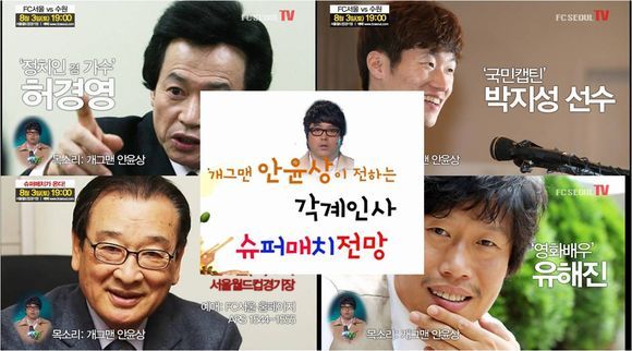 안윤상씨는 FC서울 채널(www.youtube.com/fcseoul)에서 공개되는 특별 경기 예고 영상에도 목소리 출연 할 예정이다. 각계의 스타들이 슈퍼매치의 열기를 설명하고 예매처를 안내하는 내용이다.