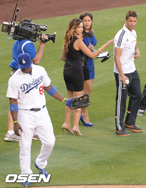 이날 경기 전 '기네스컵' 참가를 위해 로스앤젤레스를 방문한 레알 마드리드 호날두가 시구를 했고 괴물 푸이그와 만나 즐거운 시간을 가졌다.
