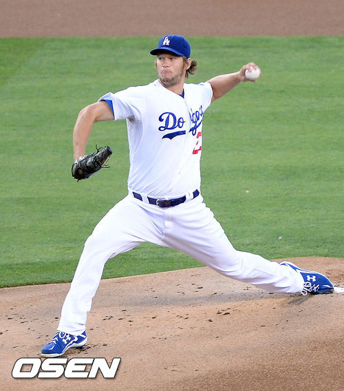 1일(이하 한국시간) 미국 캘리포니아주 로스앤젤레스 다저스타디움에서 열린 2013 메이저리그 LA 다저스와 뉴욕 양키스의 경기, 1회초 다저스 선발투수 커쇼가 역투하고 있다