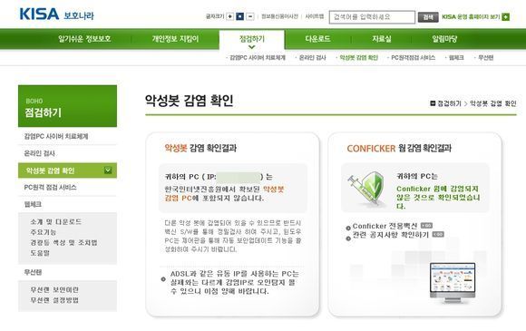 [OSEN=이슈팀]한국인터넷진흥원에서 운영하는 '보호나라(ww.boho.or.kr)'에 들어가면 내 컴퓨터가 좀비PC가 됐는지 간편하게 확인할 수 있다.