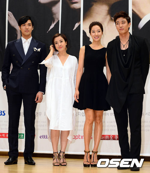1일 오후 서울 목동 SBS사옥에서 열린 SBS 새 아침드라마 '두 여자의 방' 제작발표회에서 강지섭, 박은혜, 왕빛나, 강경준이 포토타임을 갖고 있다.