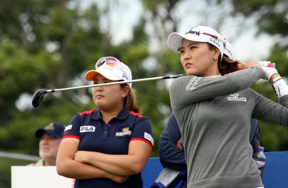 [OSEN=스포츠부] 브리티시 오픈 공식 연습라운드 중 박인비(25, KB금융그룹)가 유소연(23, 하나금융그룹)의 스윙을 바라보고 있다.