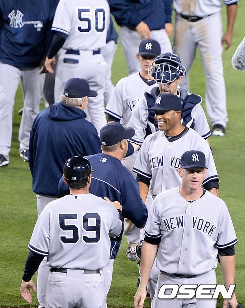 경기 종료 후 양키스 리베라가 동료들과 승리의 기쁨을 나누고 있다. /sunday@osen.co.kr