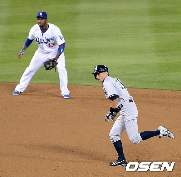 9회초 2사 1,2루에서 LA 엘리스의 실책 때 2루주자 이치로가 홈으로 달리고 있다. /sunday@osen.co.kr