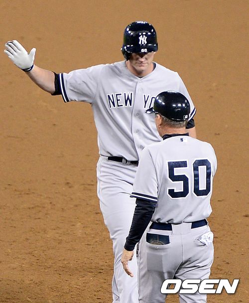 9회초 2사 1,2루에서 양키스 오버베이가 중전 적시타를 치고 환호하고 있다. /sunday@osen.co.kr