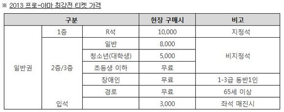 2013 프로-아마최강전 티켓 예매가 오는 6일부터 시작된다.