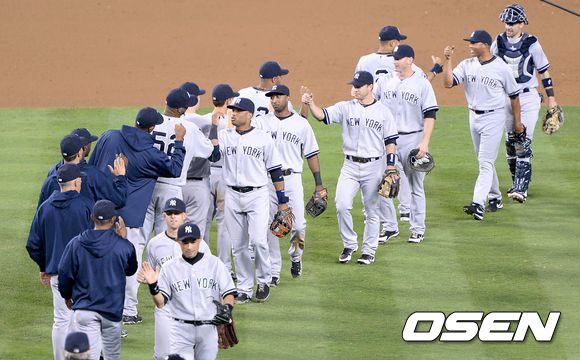 경기 종료 후 양키스 선수들이 환호하고 있다. /sunday@osen.co.kr