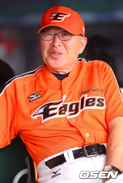 1일 오후 서울 목동구장에서 열린 2013 한국야쿠르트 세븐프로야구 넥센 히어로즈와 한화 이글스의 경기에 앞서 한화 김응룡 감독이 취재진들과 인터뷰를 하고 있다.