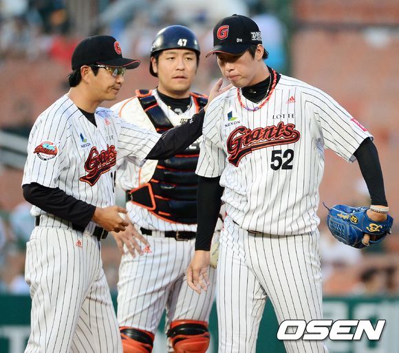2회초 무사 1루에서 롯데 선발 이재곤이 강판당하고 있다.