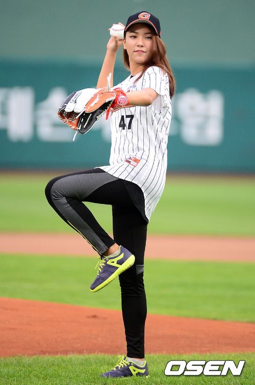 경기에 앞서 2013 미스코리아 미, 부산 진 최혜린이 시구를 하고 있다.