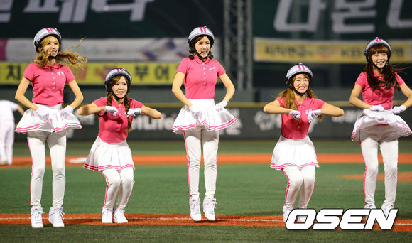 1일 오후 서울 목동구장에서 열린 2013 한국야쿠르트 세븐프로야구 넥센 히어로즈와 한화 이글스의 경기 5회말 종료 클리닝타임때 걸그룹 크레용팝이 축하공연을 펼치고 있다.