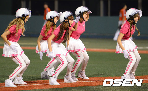 1일 오후 서울 목동구장에서 열린 2013 한국야쿠르트 세븐프로야구 넥센 히어로즈와 한화 이글스의 경기 5회말 종료 클리닝타임때 걸그룹 크레용팝이 축하공연을 펼치고 있다.