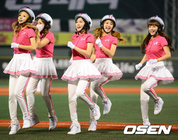 1일 오후 서울 목동구장에서 열린 2013 한국야쿠르트 세븐프로야구 넥센 히어로즈와 한화 이글스의 경기 5회말 종료 클리닝타임때 걸그룹 크레용팝이 축하공연을 펼치고 있다.