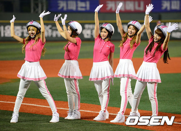 1일 오후 서울 목동구장에서 열린 2013 한국야쿠르트 세븐프로야구 넥센 히어로즈와 한화 이글스의 경기 5회말 종료 클리닝타임때 걸그룹 크레용팝이 축하공연을 펼치고 있다.