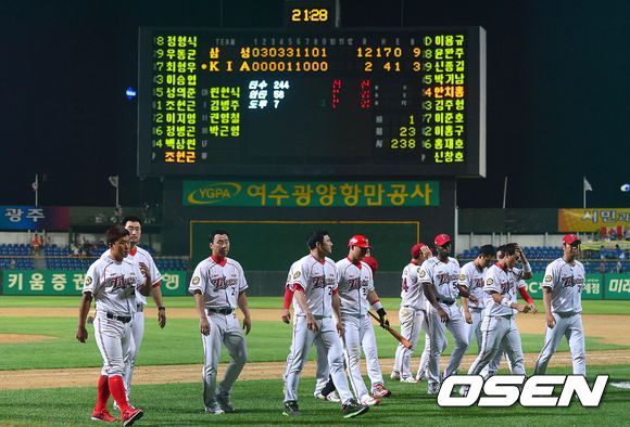 경기 종료 직후 KIA 선수들이 팬들에게 인사한 뒤 그라운드를 나서고 있다.