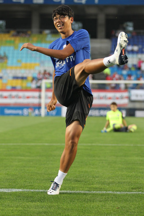 한국 테니스의 샛별 정현(17, 삼일공고)이 테니스 라켓을 잠시 내려놓고 축구장을 찾았다.