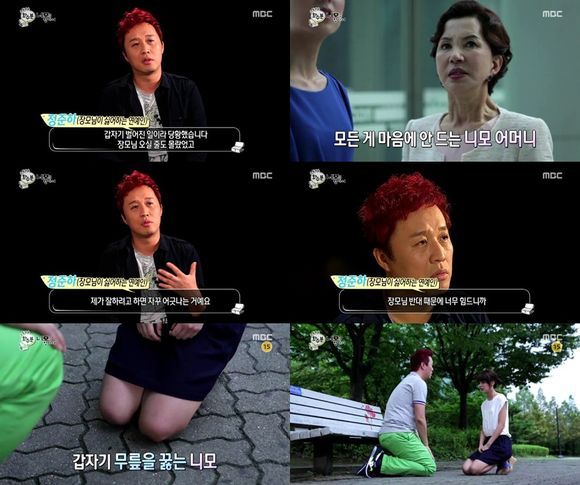 이번 콩트에서 정준하는 "장모님의 반대가 심해서 많이 힘들었다"고 말해 당시 힘들었던 상황을 이야기했다.