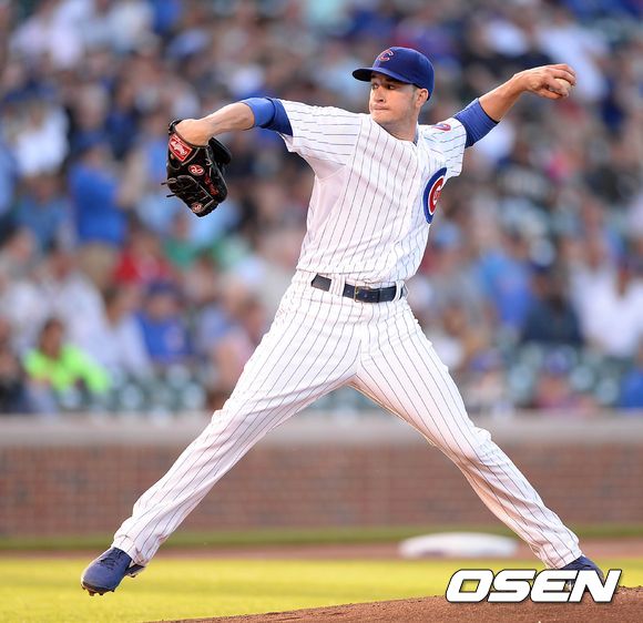 1회초 무사에서 시카고 선발투수 크리스 러신이 힘차게 공을 던지고 있다.