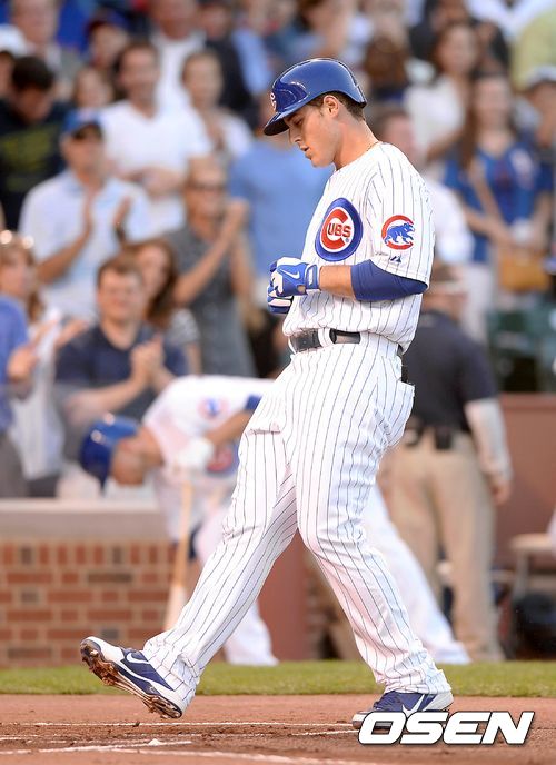 1회말 1사에서 시카고 리조가 우월 솔로 홈런을 치고 홈을 밟고 있다.
