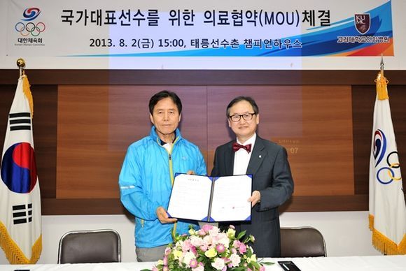 대한체육회(회장 김정행)는 2일 오후 3시 태릉선수촌 챔피언하우스 올림픽룸에서 고려대학교 안암병원(서울 성북구 소재, 원장 박승하)과 의료협약 체결식을 가졌다.