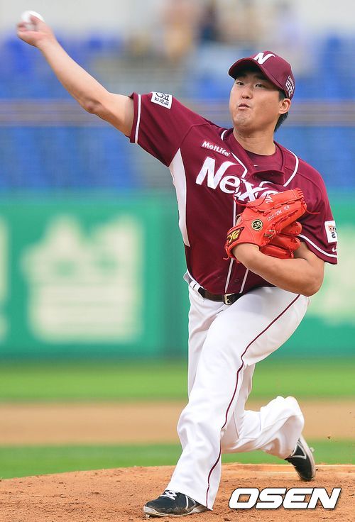 1회말 KIA 공격, 넥센 선발 김영민이 힘차게 공을 뿌리고 있다.