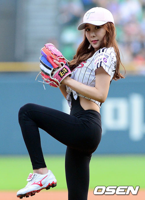 2일 오후 서울 잠실구장에서 열린 '2013 한국야쿠르트 세븐 프로야구' LG 트윈스와 삼성 라이온즈의 경기 시작전 원자현이 시구를 하고 있다.