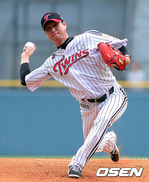 2일 오후 서울 잠실구장에서 열린 '2013 한국야쿠르트 세븐 프로야구' LG 트윈스와 삼성 라이온즈의 경기 LG 선발 우규민이 연습투를 던지고 있다.