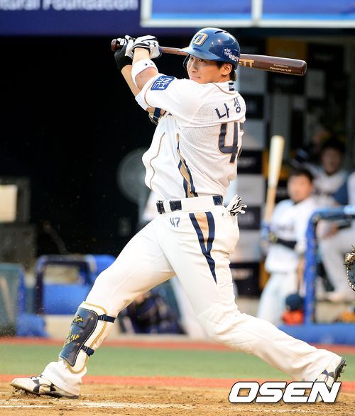 1회말 1사 2루에서 NC 나성범이 선제 1타점 적시타를 날리고 타구를 바라보고 있다.
