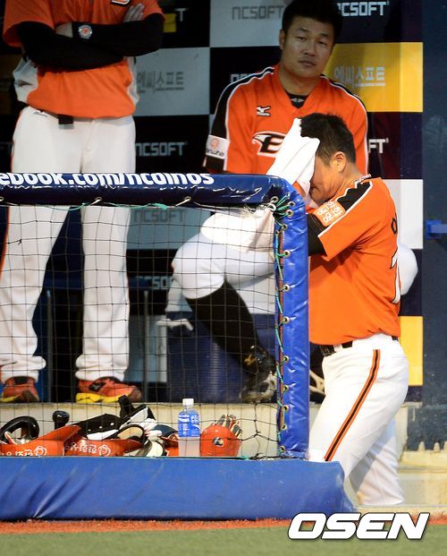 3회말 1사 1,2루에서 한화 이대수가 실책으로 이학준과 교체되고 있다.