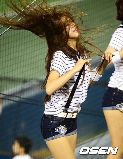 NC 치어리더 김연정이 열띤 응원을 하고 있다.
