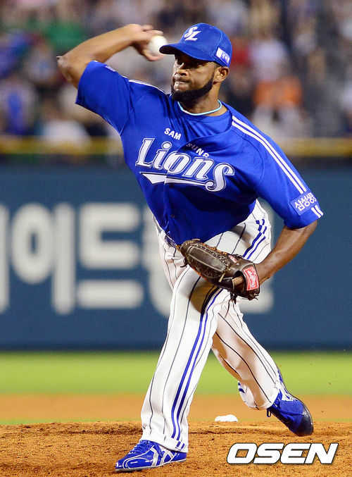 2일 오후 서울 잠실구장에서 열린 '2013 한국야쿠르트 세븐 프로야구' LG 트윈스와 삼성 라이온즈의 경기 7회말 카리대가 역투를 펼치고 있다.