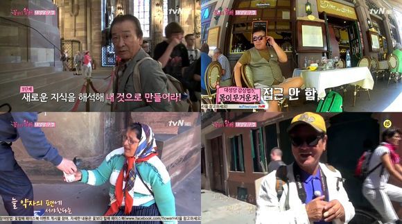 tvN '꽃보다 할배'의 네 주인공 이순재, 박근형, 신구, 백일섭이 각기 다른 개성으로 노트르담 성당을 경험했다.