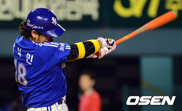 2일 오후 서울 잠실구장에서 열린 '2013 한국야쿠르트 세븐 프로야구' LG 트윈스와 삼성 라이온즈의 경기 8회초 2사 만루 박석민이 2타점 2루타를 치고 있다.