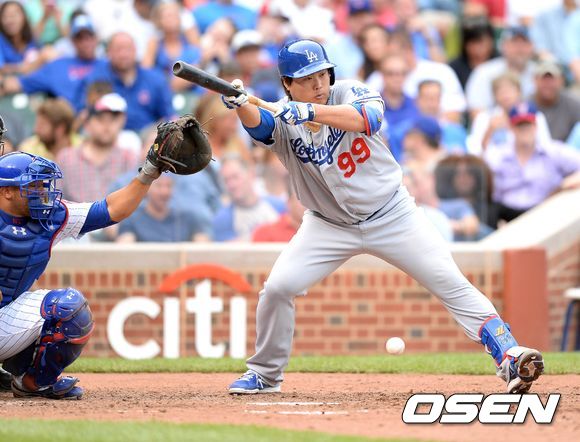 5회초 무사 2루 류현진이 번트를 성공시키고 있다. 야수선택으로 진루했다./sunday@osen.co.kr