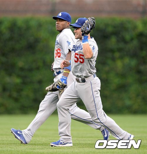 9회말 1사 1,2루에서 다저스 슈마커가 컵스 레이크를 외야플라이로 처리하고 있다. /sunday@osen.co.kr