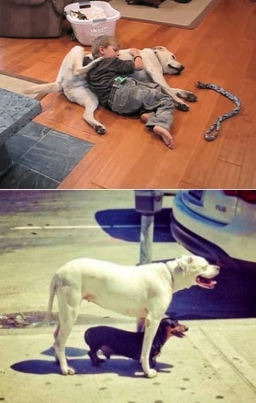 [OSEN=이슈팀] 개와 상부상조하는 모습을 담은 몇 장의 사진이 인터넷에서 화제가 되고 있다.