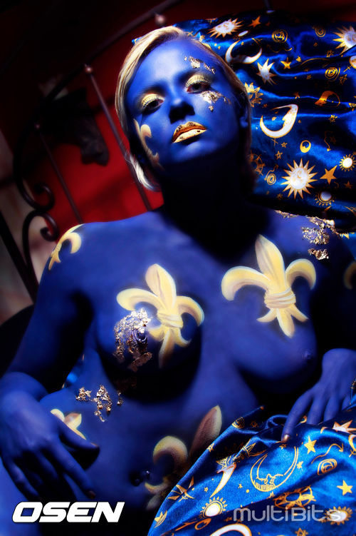 [OSEN/WENN 특약] 바디페인트로도 모델의 S라인은 가려지지 않았다. 독일의 바디페인터 겸 예술가 요르그 도이스터발트가 선보인 캘린더용 작품 중 하나다. 프랑스 왕실의 문초이자 수많은 가문의 문장으로 사용됐던 '플뢰르 드 리스'라는 문양과 S라인 모델의 몸이 조화를 이루고 있다. 특히 문양과 에머랄드 빛 배경이 절묘하게 어우러져 보인다.