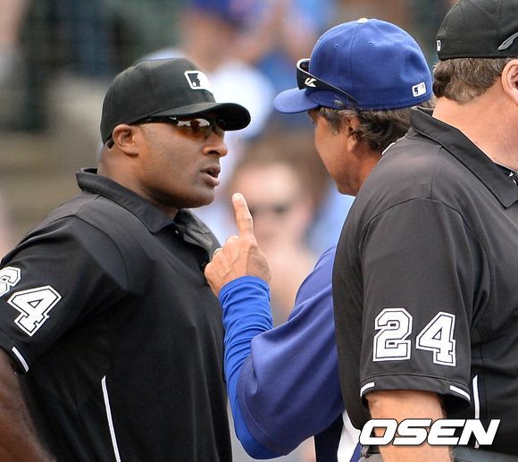 4회초 무사 1루 볼넷을 확신한 엘리스가 스트라이크 아웃을 선언한 구심에게 판정에 어필을 하다 퇴장이 선언됐다. 이에 매팅리 감독이 어필하다 역시 퇴장이 선언됐다./sunday@osen.co.kr