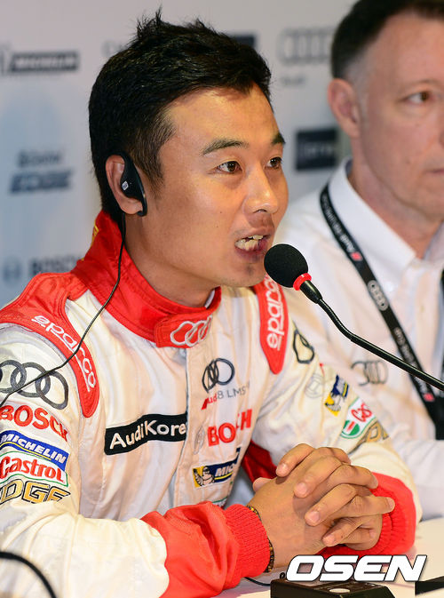 3일 오후 강원도 인제군 인제스피디움에서 열린 '아우디 R8 LMS컵' 시리즈에서 앞서 진행된 기자회견에서 유경욱이 소감을 전하고 있다.
