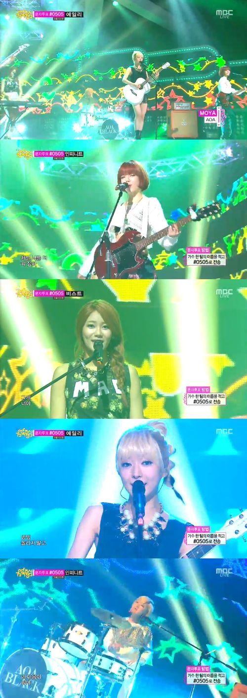 한편 이날 '음악중심'에는 비스트, 인피니트. f(x), 엑소, 에이핑크, 에일리, 빅스, 쥬얼리, 코요태 . 아웃사이더, 파이브돌스, M.I.B, 크레용팝, TOXIC, 러시, AOA, 콜라보이스, 엠파이어 등이 출연했다.