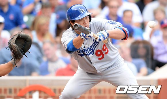 5회초 무사 2루 류현진이 번트를 시도하고 있다. 류현진은 야수선택으로 1루에 진루했다./sunday@osen.co.kr