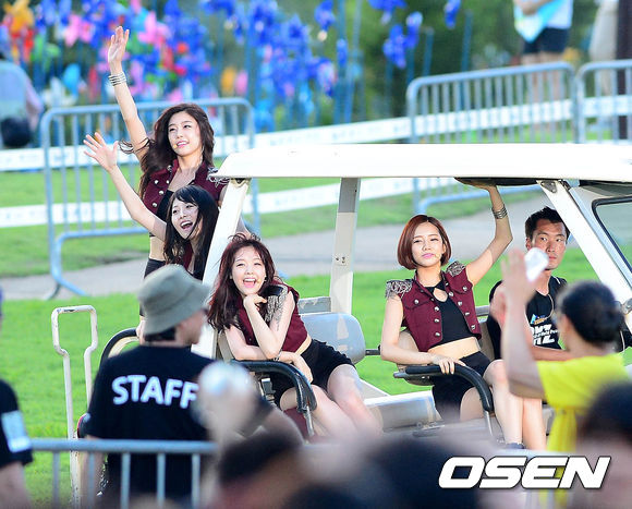 3일 오후 경기도 파주시 임진각 평화누리공원에서 열린 'DMZ 세계평화 콘서트'에서 걸스데이가 카트를 타고 무대를 이동하는 이벤트를 하고 있다.