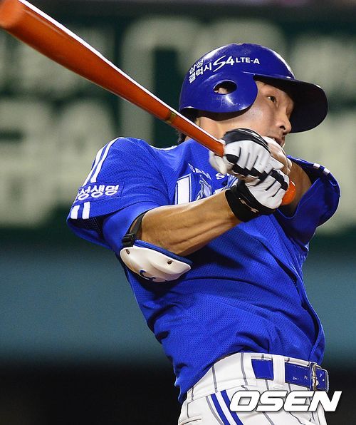 9회초 삼성 공격 1사 주자없는 상황, 1번타자 정형식이 우월 솔로포를 날리고 타구를 바라보고 있다.