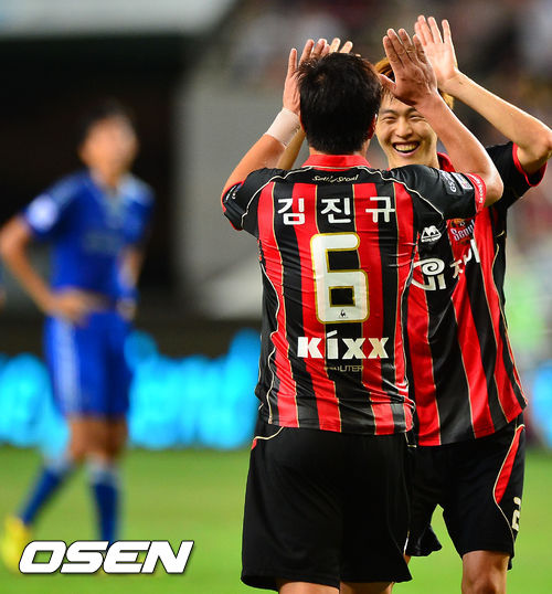'수트라이커' 김진규가 결승골을 뽑아낸 서울이 수원을 꺾고 3년, 그리고 10경기 만의 슈퍼매치 승리를 가져왔다.