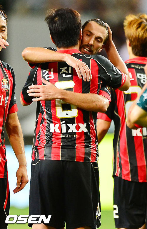 경기를 마치고 FC 서울 김진규와 데얀이 포옹을 하고 있다. / rumi@osen.co.kr