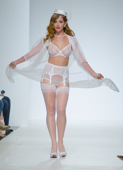 사진 속 미녀는 순백의 웨딩 란제리 컨셉으로 화사한 몸매를 뽐내고 있다. 이외에도 많은 수퍼모델들이 속살를 그대로 드러내는 망사 팬티와 화사한 플라워 프린트의 브라 패션으로 사진 작가들의 플래시 세례를 받았다. 유서 깊은 뉴욕 란제리 패션 위크는 세계적인 란제리 패션 브랜드의 경연장임과 동시에 수많은 디자이너와 모델들이 정상 도전을 향해 꿈을 펼치는 환상의 무대이기도 하다.