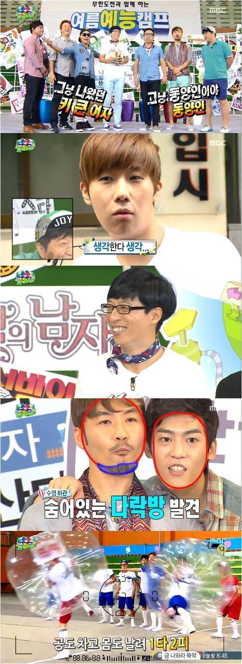 이날 방송된 '무한도전'에서는 재능이 있는 예능 꿈나무들을 키우겠다는 의도로 초대된 게스트들과 함께 게임을 즐기는 '여름 예능캠프' 1편이 그려졌다.