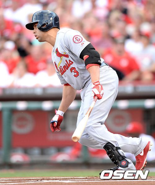 4일(이하 한국시간) 미국 오하이오주 신시내티에 위치한 그레이트 아메리칸 볼파크에서 열린 2013 메이저리그 신시내티 레즈와 세인트루이스 카디널스의 경기, 1회초 무사에서 세인트루이스 벨트란이 중전 적시 2루타를 치고 있다.