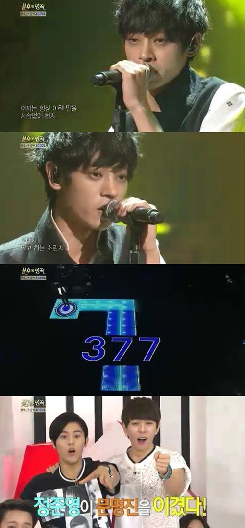 가수 정준영이 KBS 2TV 예능 프로그램 '불후의 명곡-전설을 노래하다'(이하 '불후2')에서 이변을 만들어냈다. 정준영이 '불후의 대세' 문명진을 꺾은 것.